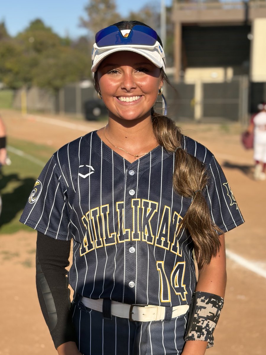 Senior ace Riley McAndrew (left) tossed six scoreless innings, scattering just two hits with six strikeouts. Kayla Cisneros (right) went 4-for-5 at the plate with four RBIs in Millikan’s win over Wilson!