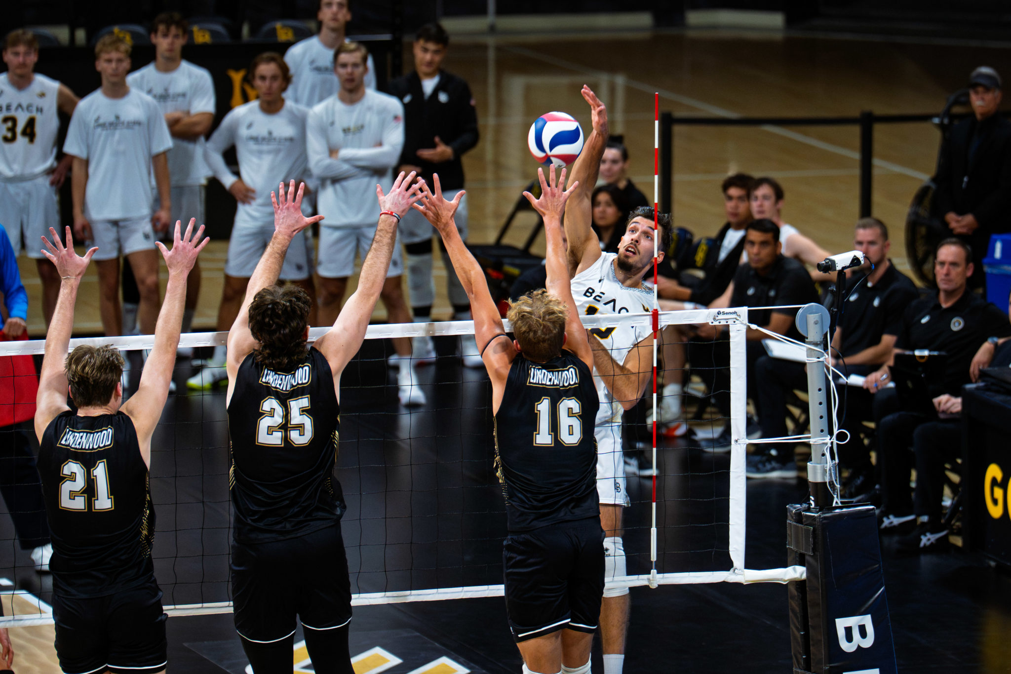 Long Beach State swept Lindenwood in their season opener to open their national championship defense 1-0. The Beach won 25-21, 25-16, 25-20. Long Beach was led by nine kills apiece from Skyler Varga and Alex Kandev.